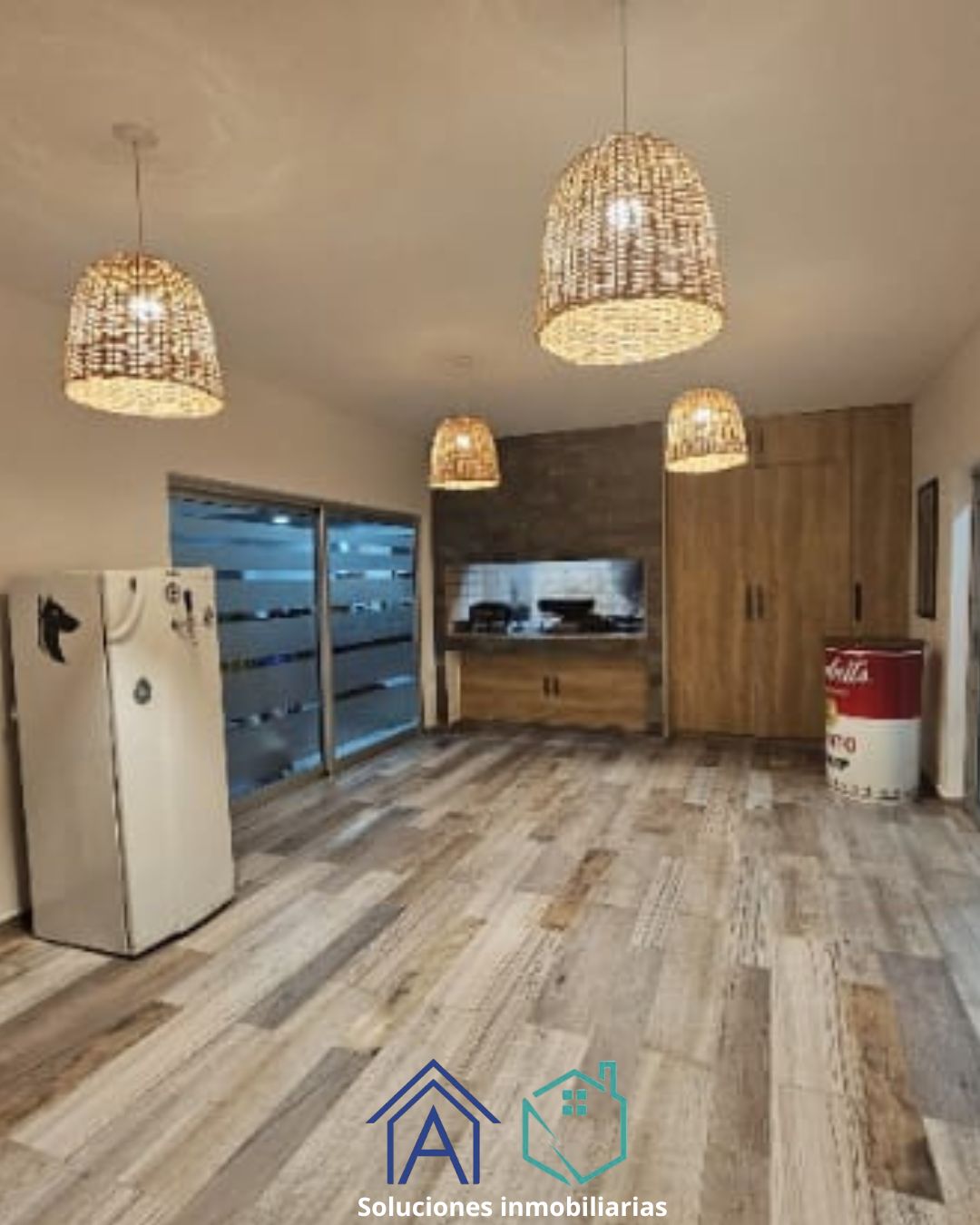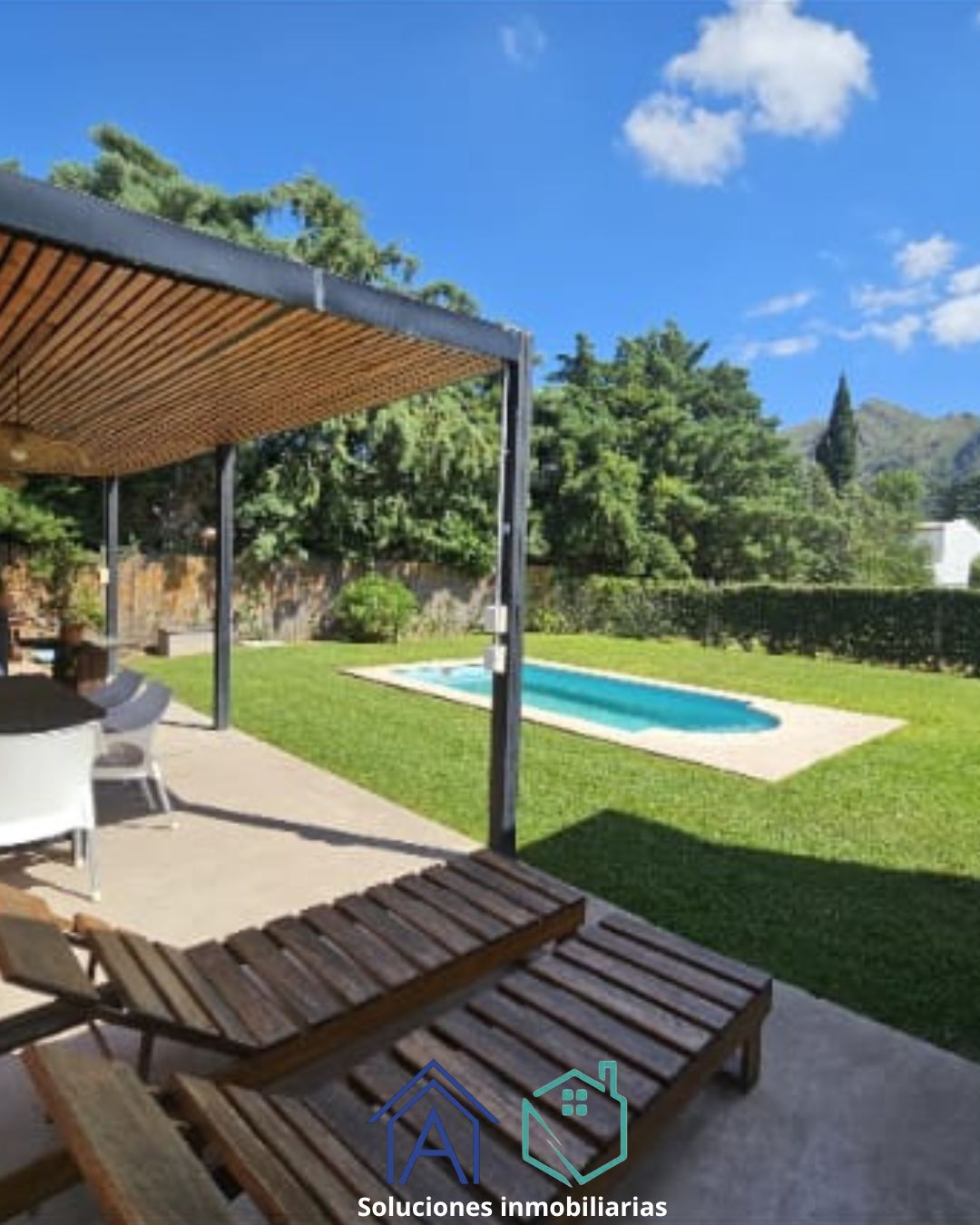 Cuenta con 170 m² cubiertos y 60 m² semicubiertos distribuidos entre la cochera y el quincho.